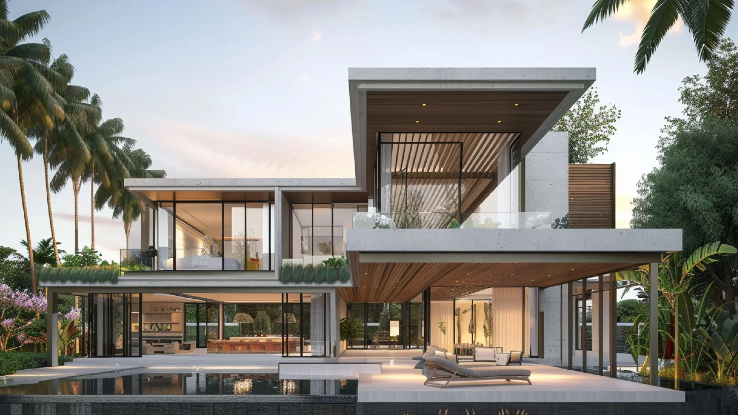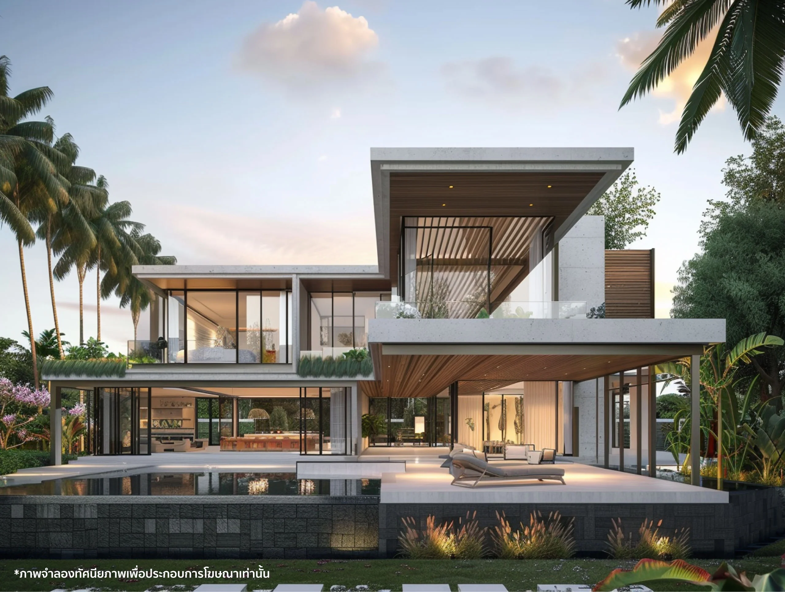 บ้านโมเดิร์นทรอปิคอลที่ยกชั้นล่างให้โปร่งเหมือนศาลากลางสวน มีสระน้ำด้านหน้าเป็นเวทีหลักของการใช้ชีวิต ตั้งใจให้ทุกเย็นรู้สึกเหมือนพักผ่อนอยู่รีสอร์ตริมทะเล