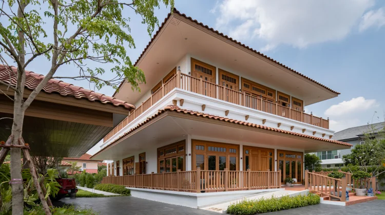 บ้านสองชั้นสไตล์ไทยประยุกต์ที่เอา “ชานบ้าน” มาเป็นพระเอก ออกแบบให้เดินเล่น นั่งรับลม คุยกับครอบครัวได้รอบบ้าน เหมือนอยู่เรือนไทยในเวอร์ชันทันสมัย “เรียบง่ายแต่มีระดับ” อยู่ไปยิ่งผูกพัน ยิ่งเห็นคุณค่าความเป็นบ้านของตัวเอง
