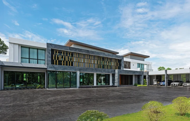 โดยมีสถาปนิกเข้ามารับโจทย์และออกแบบอย่างเข้าใจตัวตน ให้ความสำคัญไลฟ์สไตล์ และความต้องการเจ้าของบ้านเป็นหลัก กระทั่งรังสรรค์ให้ทุกรายละเอียดของบ้านมีกลิ่นอายของสถาปัตยกรรมสไตล์ไทยพื้นบ้านร่วมสมัย ผสมผสานกับสถาปัตยกรรมตะวันออกสไตล์จีน ญี่ปุ่น อย่างลงตัว รวมไปถึงการออกแบบและวางแปลนบ้านอย่างถูกหลักศาสตร์แห่งฮวงจุ้ย บนพื้นที่กว่า 1 ไร่ และมีพื้นที่ใช้สอยมากกว่า 600 ตารางเมตร